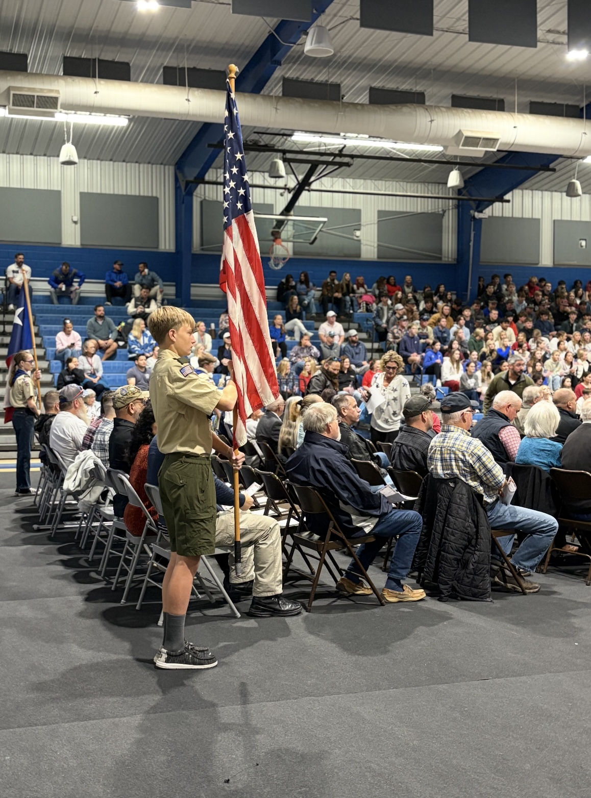 GISD held its annual Veteran’s Day program on November 11, welcoming veterans from the community to be honored for their service. FFA members greeted guests and served as ushers, the flag was presented by Gunter Boy Scout Troop 3 and Mr. Barton opened the event with words of gratitude.