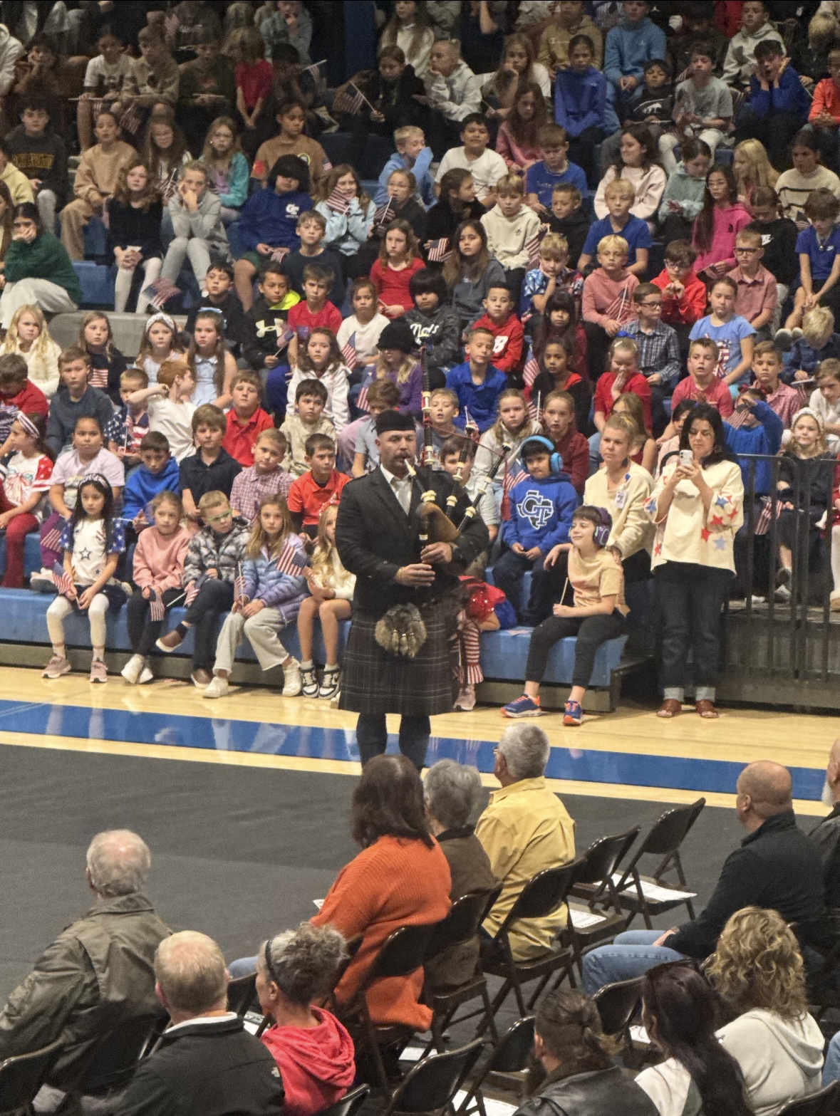 The program featured heartfelt performances, including the 3rd grade singing “We Honor You,” the band performing the songs of each military branch, and Musical Theater presenting the Star-Spangled Banner. Each veteran in attendance was individually recognized, with their years of service and roles proudly announced. Guest speaker Chris Enget delivered an inspiring message, followed by Luke Jennings’ moving bagpipe performance of Amazing Grace. Dr. Enos closed the ceremony with appreciation and invited veterans to a special brunch prepared by GISD Food Services and served by NHS officers. The GHS Floral Design class added a thoughtful touch with beautifully arranged table décor. It was a meaningful morning of gratitude, reflection, and community. |
