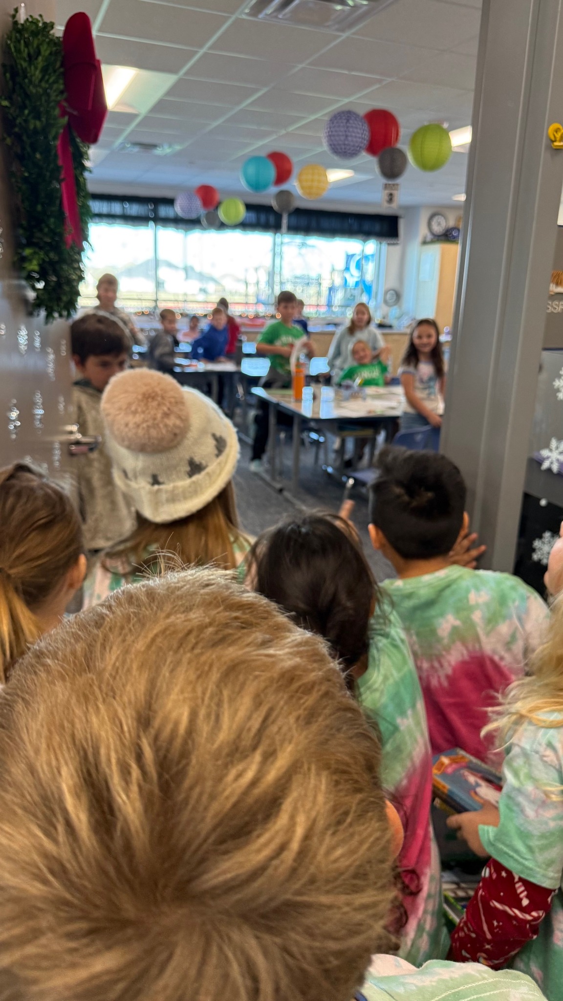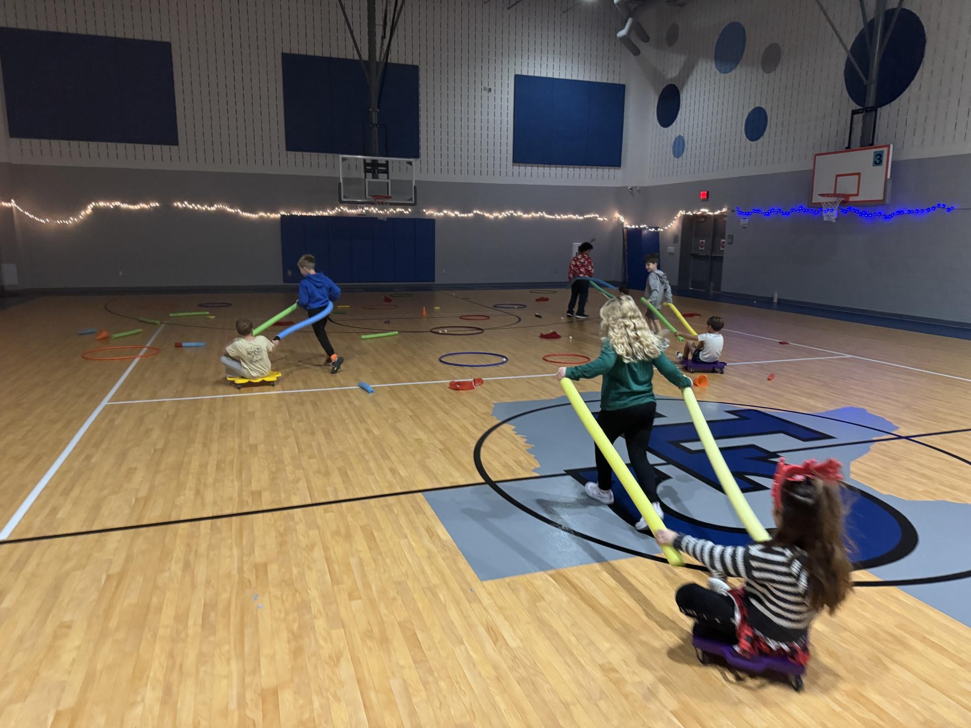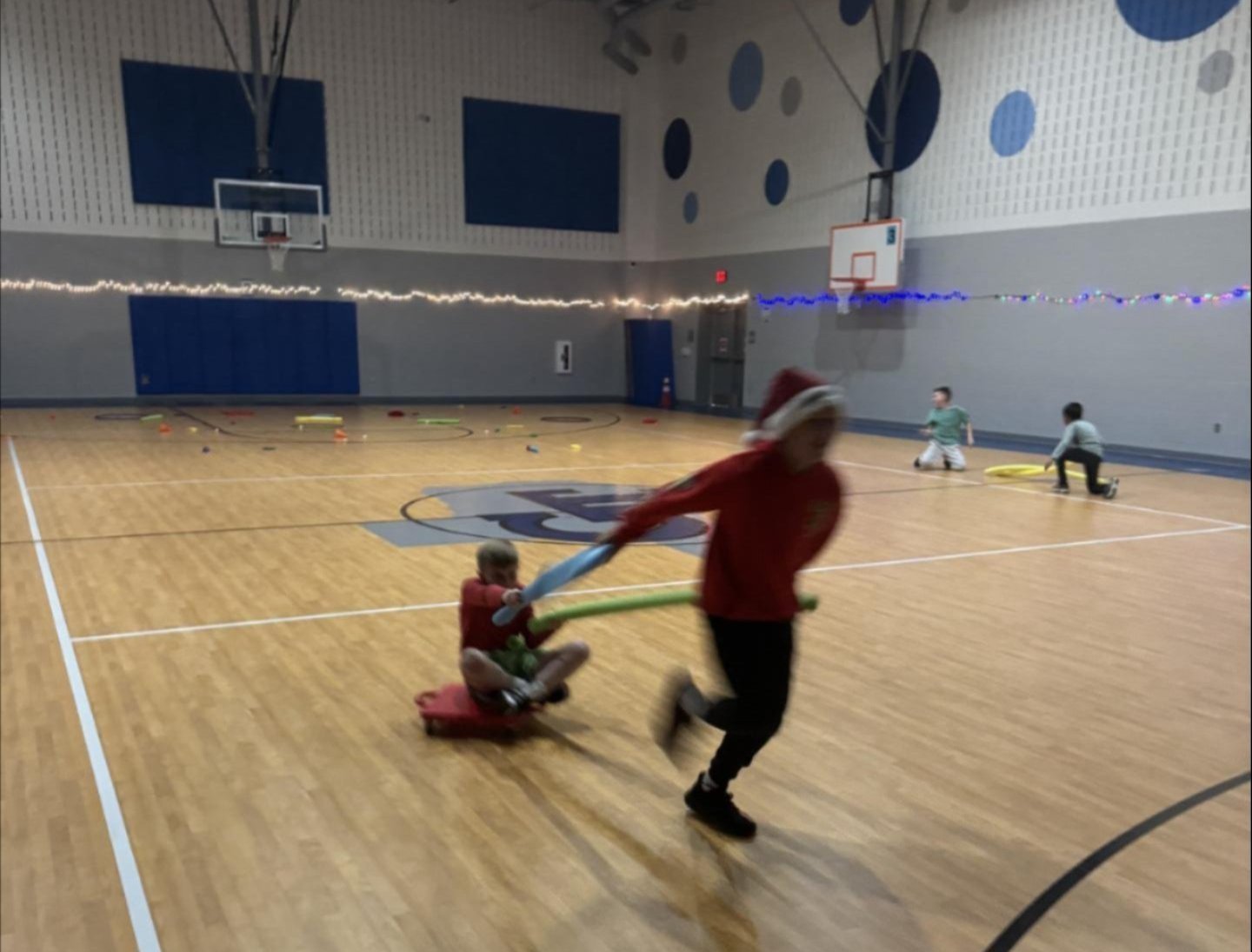 Holiday fun filled the gym during GES PE as students played “Do You Want to Build a Snowman?” and competed in Santa Relays.