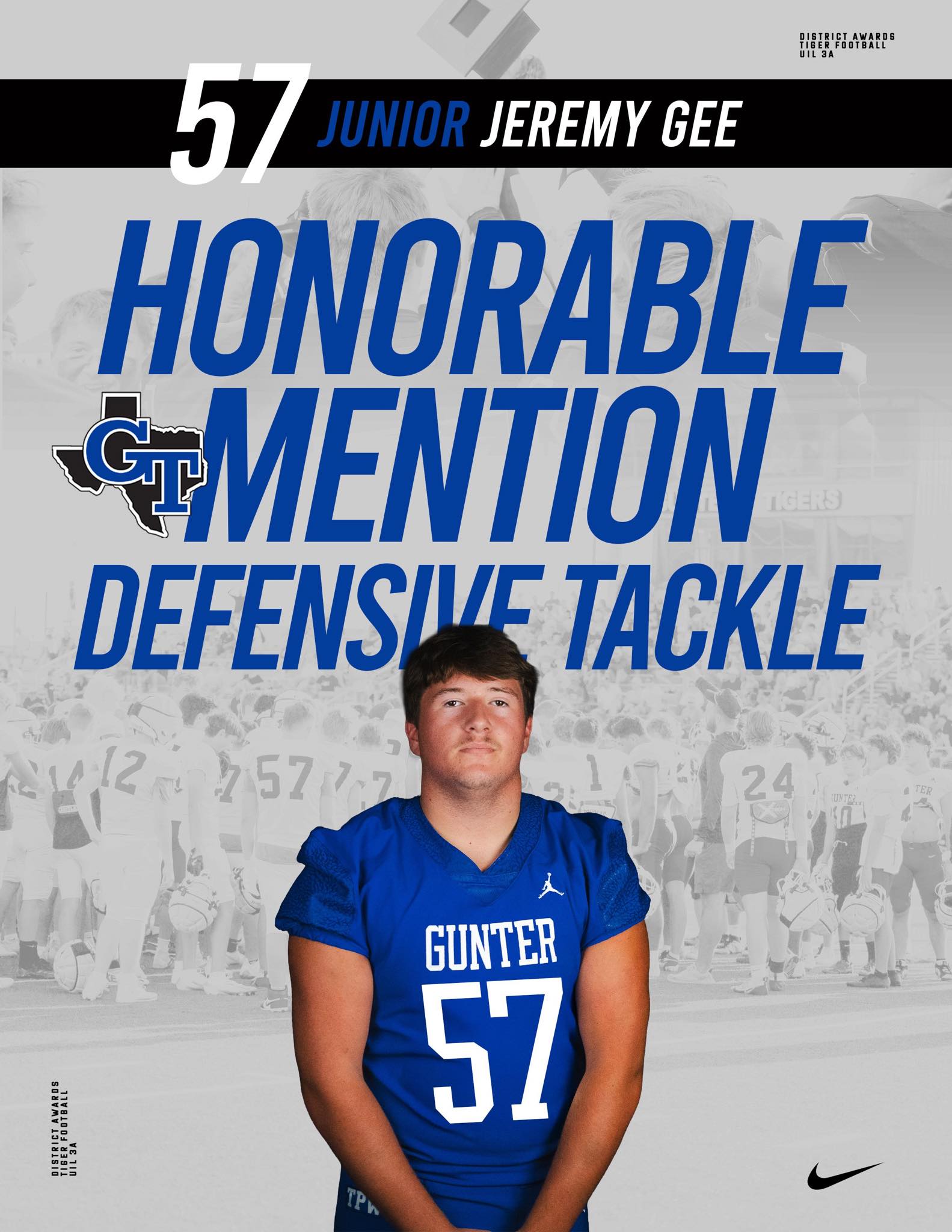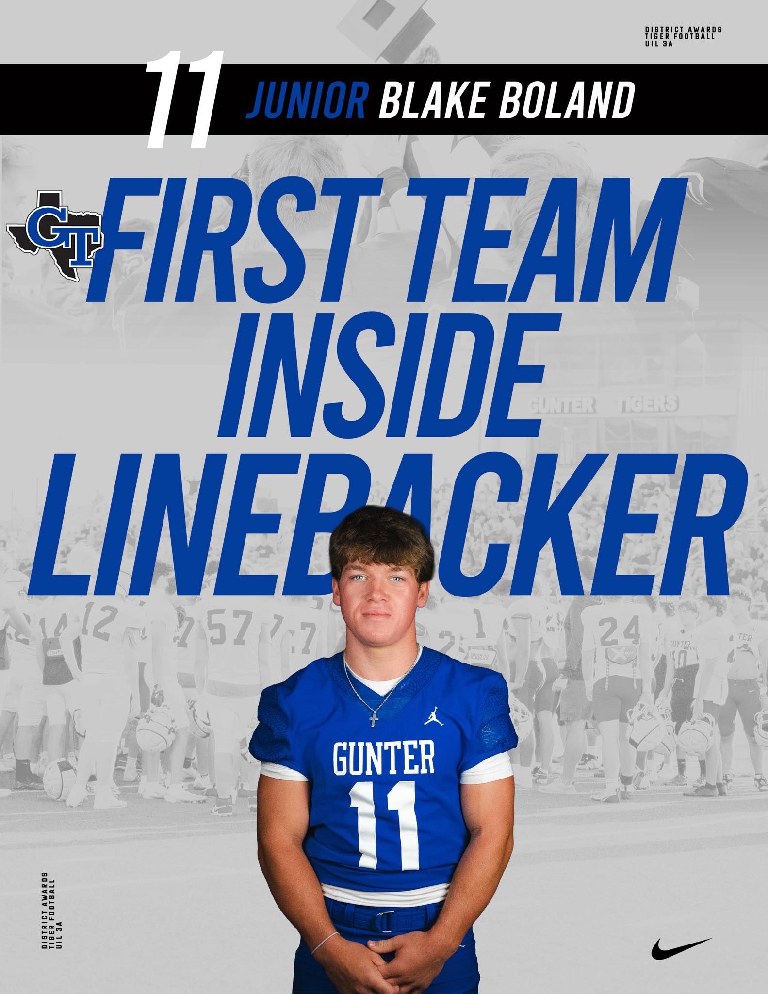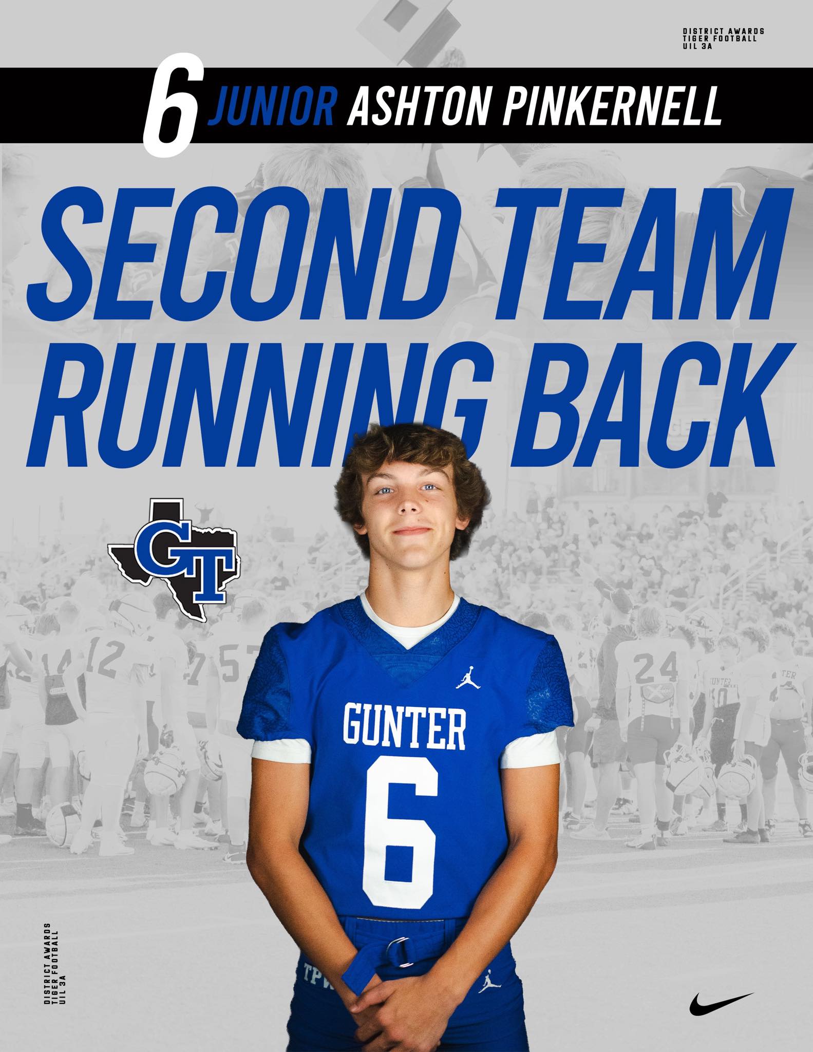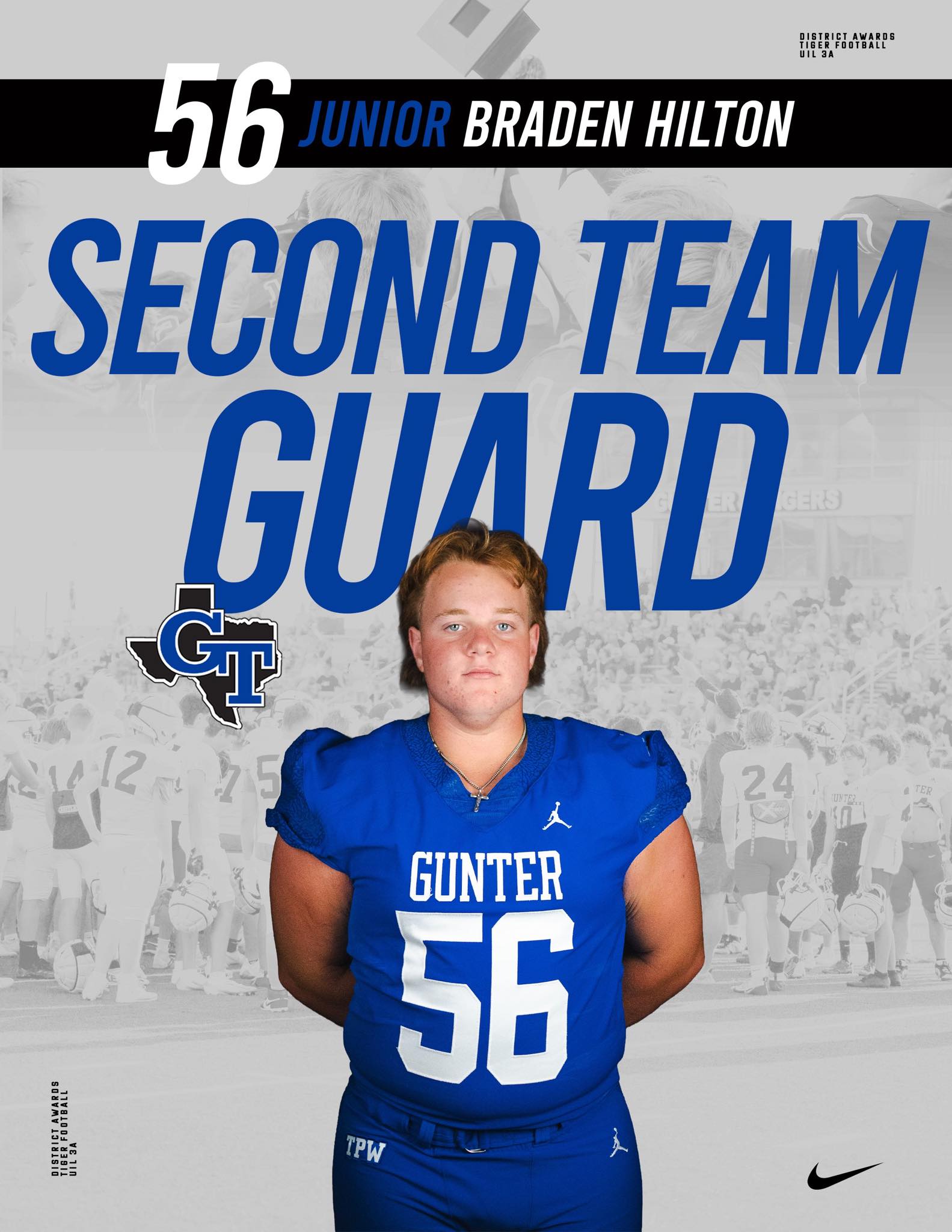 Several Gunter Tiger football players earned district honors for their tough, gritty play throughout the 2025 season. Congratulations to all on these well-deserved recognitions. |