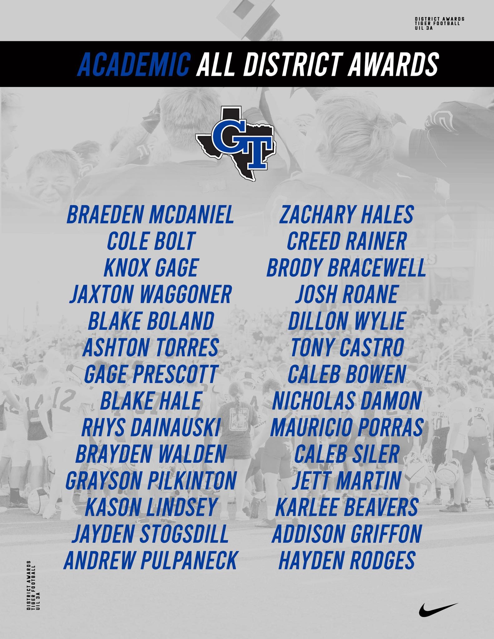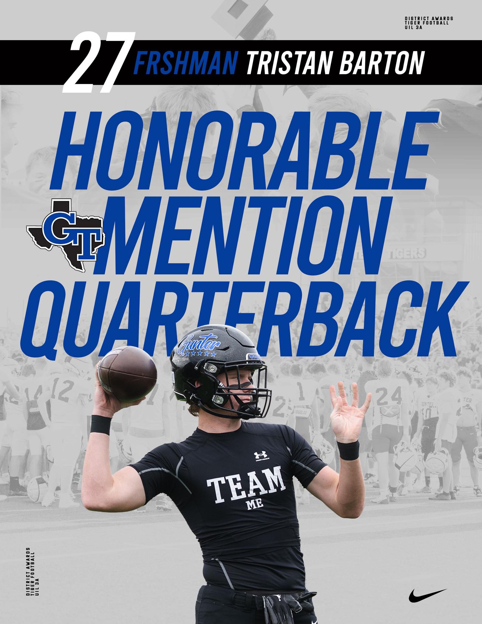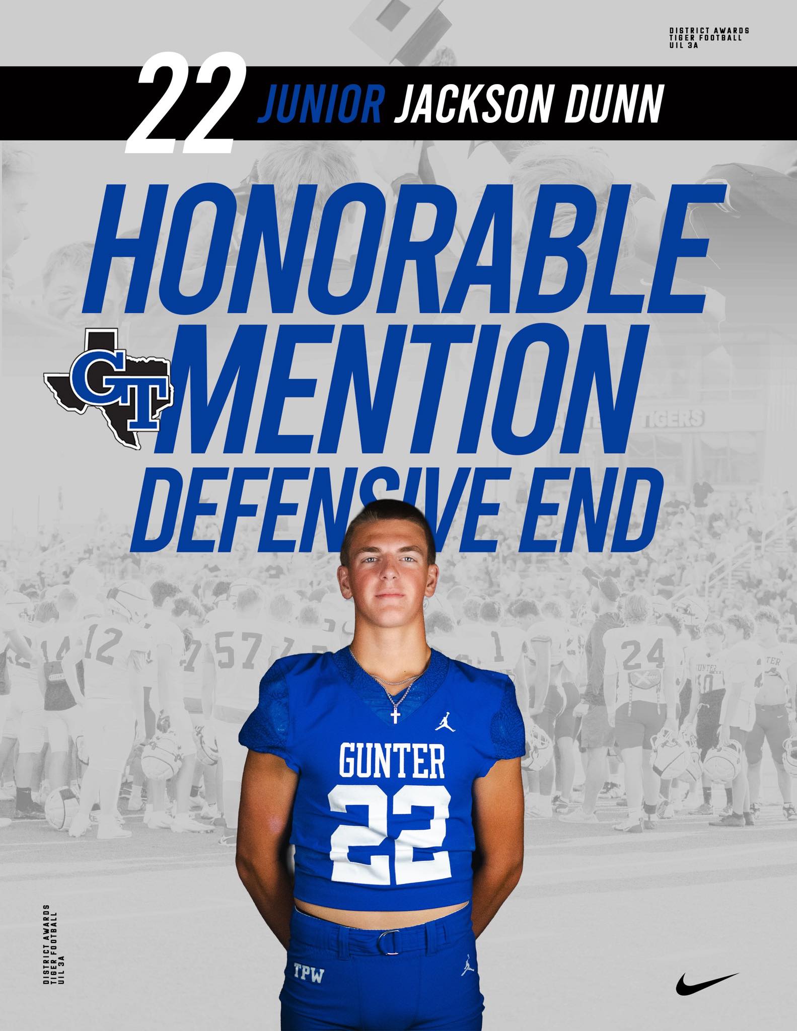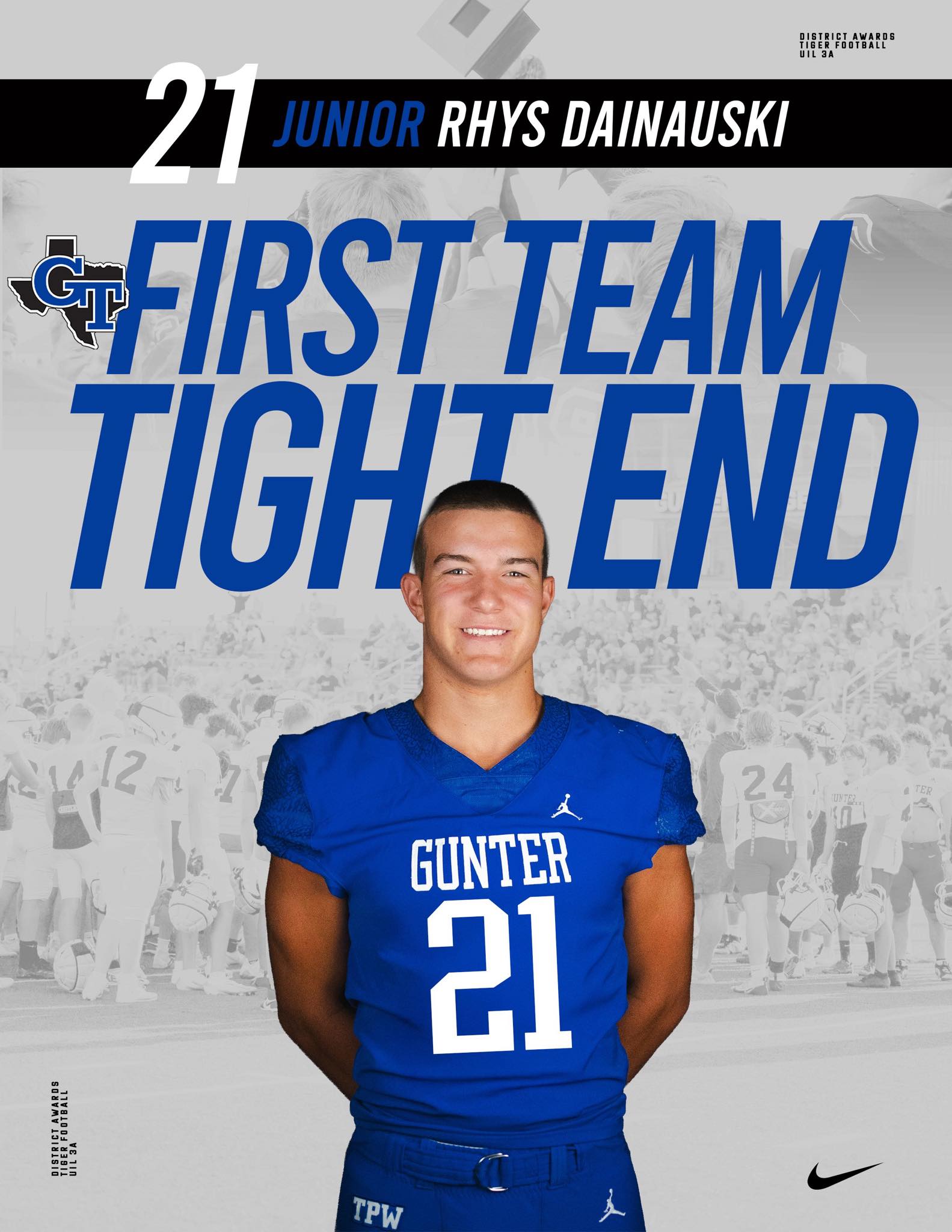 Several Gunter Tiger football players earned district honors for their tough, gritty play throughout the 2025 season. Congratulations to all on these well-deserved recognitions. |