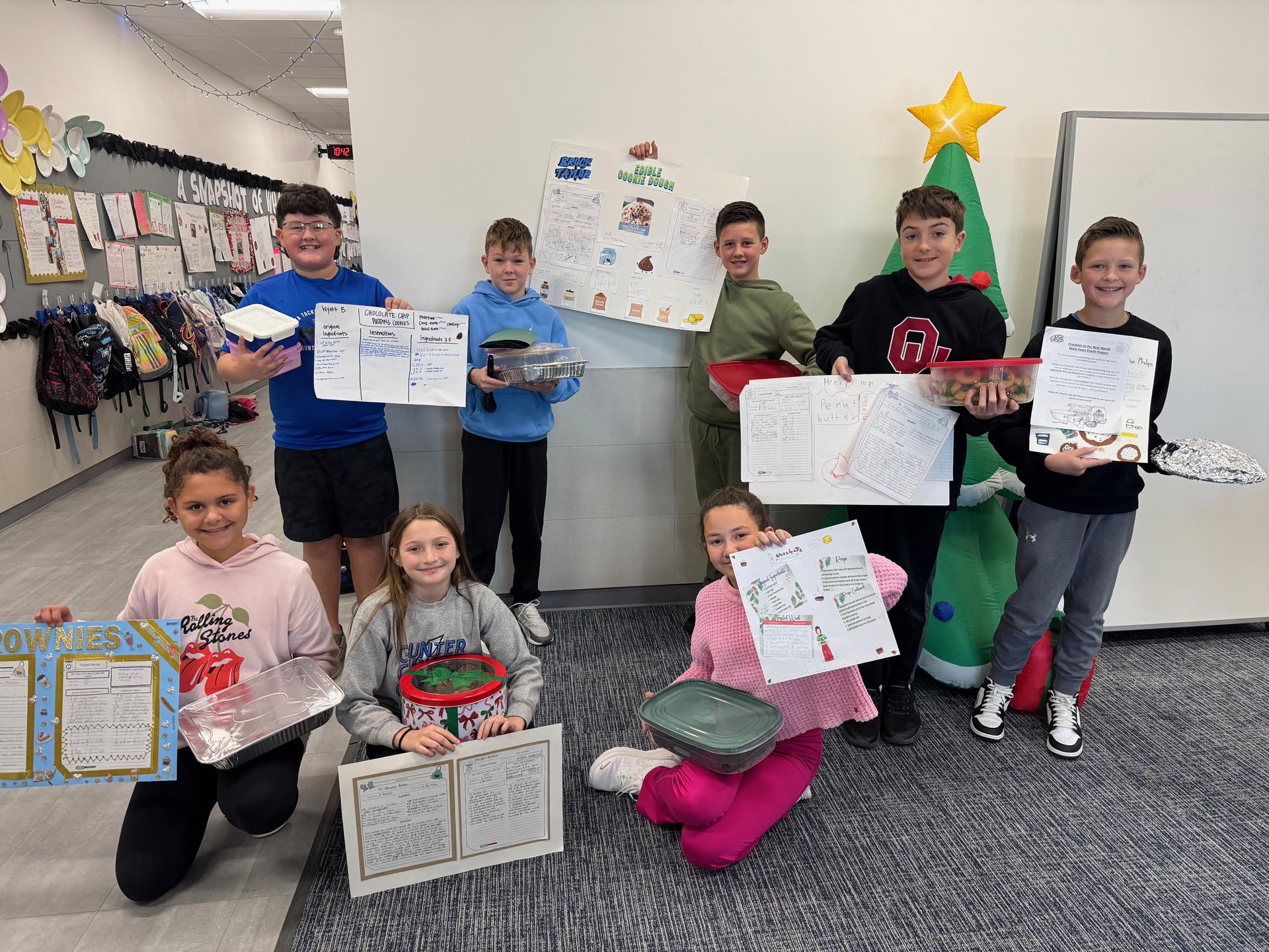 Students in Mrs. Smith's 5th-grade class took their math skills to the kitchen and had a delicious hands-on experience with fractions! For this project, each student selected a recipe that included at least 4 different fractions. They then tripled the recipe to practice their fraction multiplication skills.