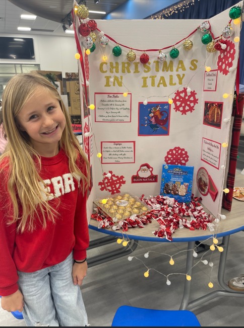 Third graders in Mrs. Foster and Mrs. Keel’s social studies explored Christmas Around the World. After researching their assigned countries, students created projects highlighting unique holiday traditions. GES students from all grade levels visited the displays to learn about Christmas celebrations across the globe. |