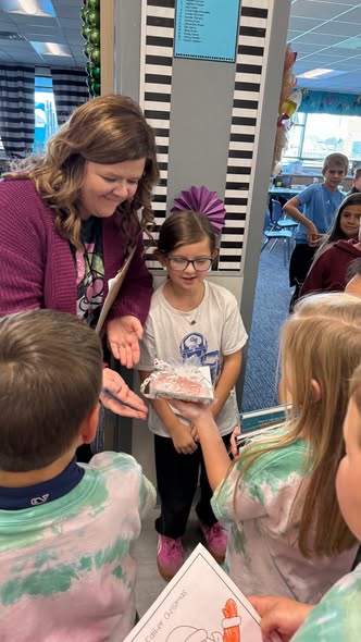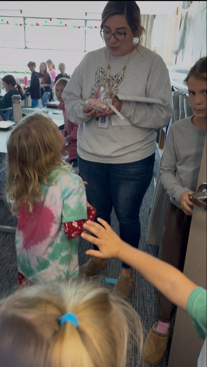 Our first graders celebrated Kindness Day on December 10, and it was an absolute delight! Students tie-dyed their own heart shirts and proudly wore them as they spread kindness throughout the school. They delivered special treats to every classroom, ensuring each student received a little surprise from our thoughtful first graders.