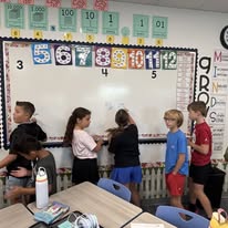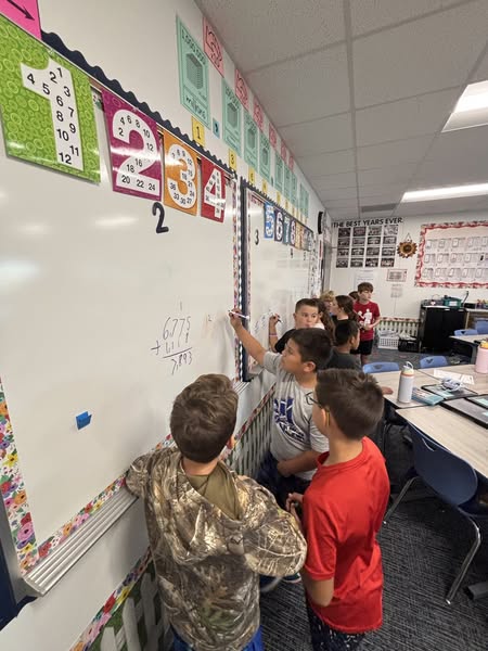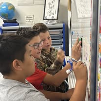 4th graders rolled up their sleeves and dove into metric conversions. Using think boards to solve multi-step problems, they showed focus, teamwork, and lots of math brainpower! |