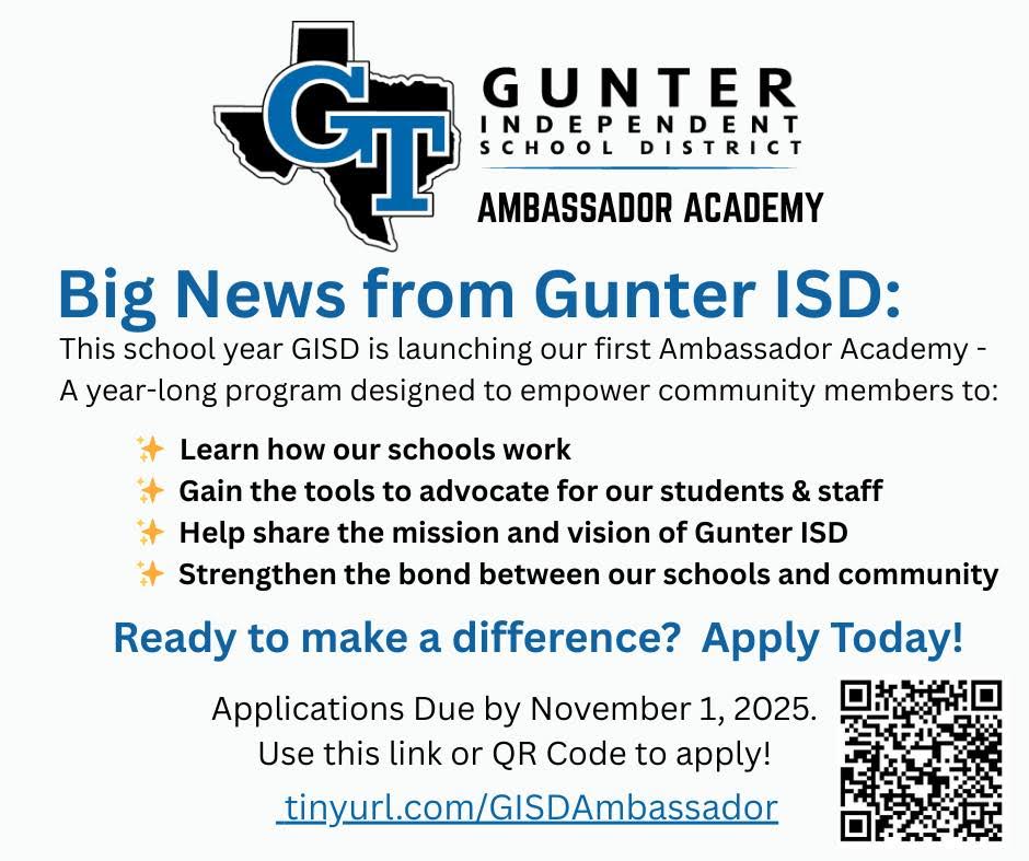 Thank you for your continued support, positivity, and partnership. Together, we’re making Gunter ISD stronger every day.