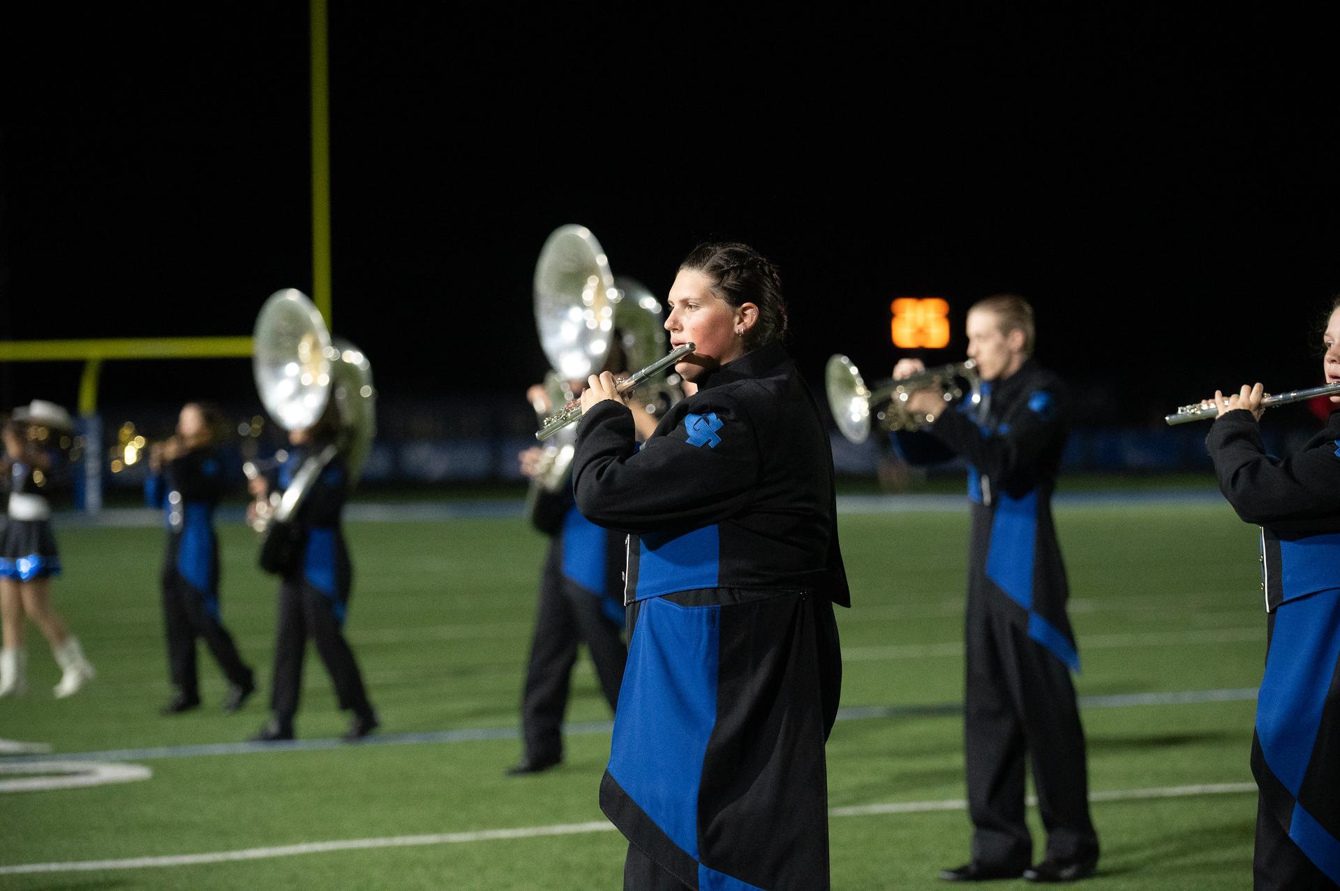 The MS Symphonic Band joined the HS Band for a fun and spirited game performance, while the HS Band kicked off its competition season at USBands–Saginaw, earning 2nd place and Best Colorguard in their division.