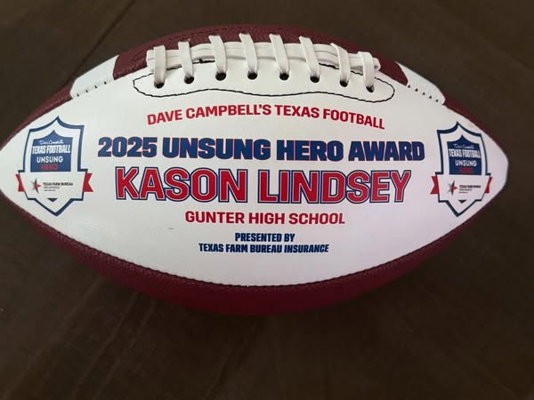Kason was honored at a recent GHS football game as one of Dave Campbell’s Texas Football Unsung Hero Award recipients.