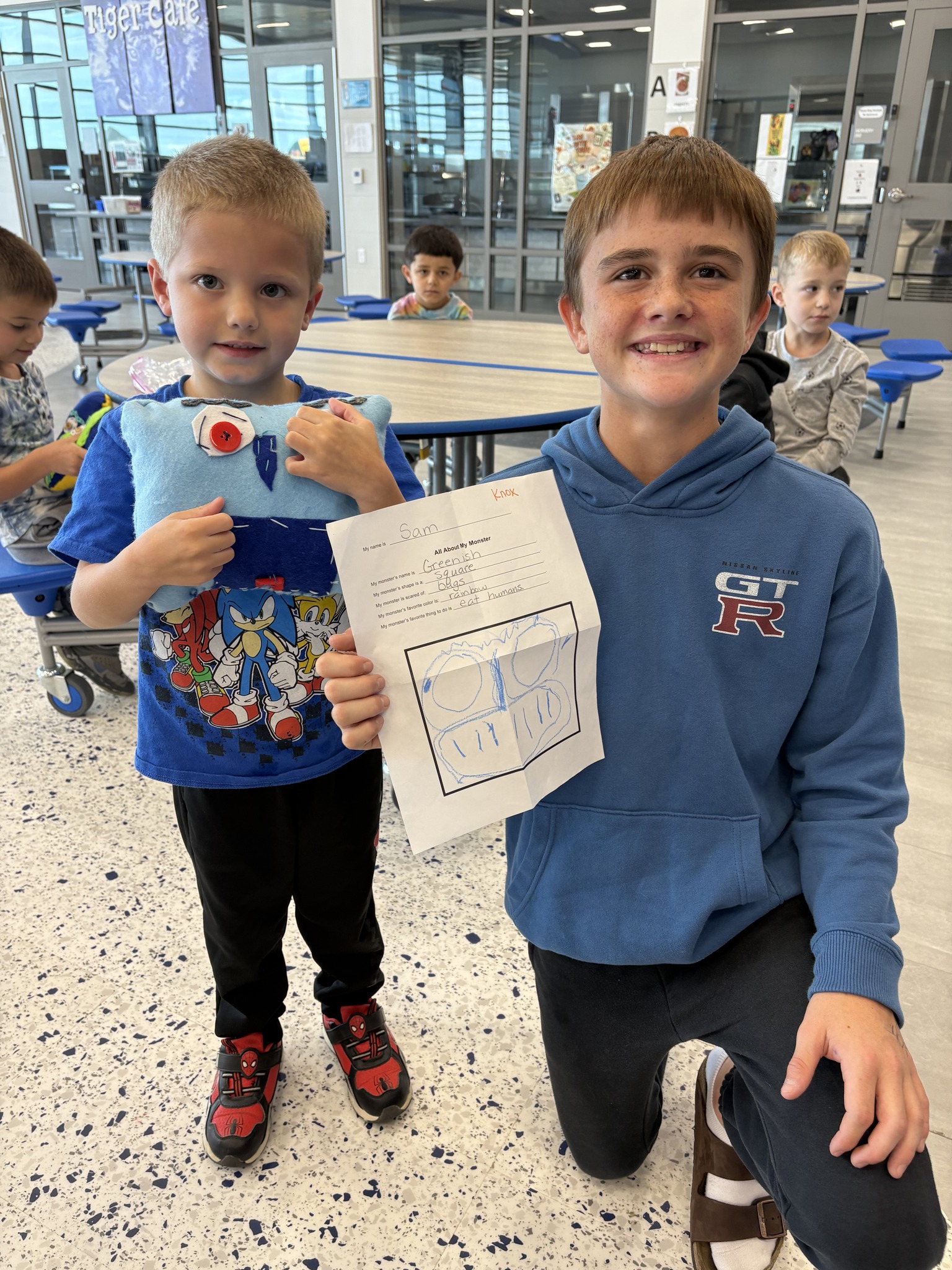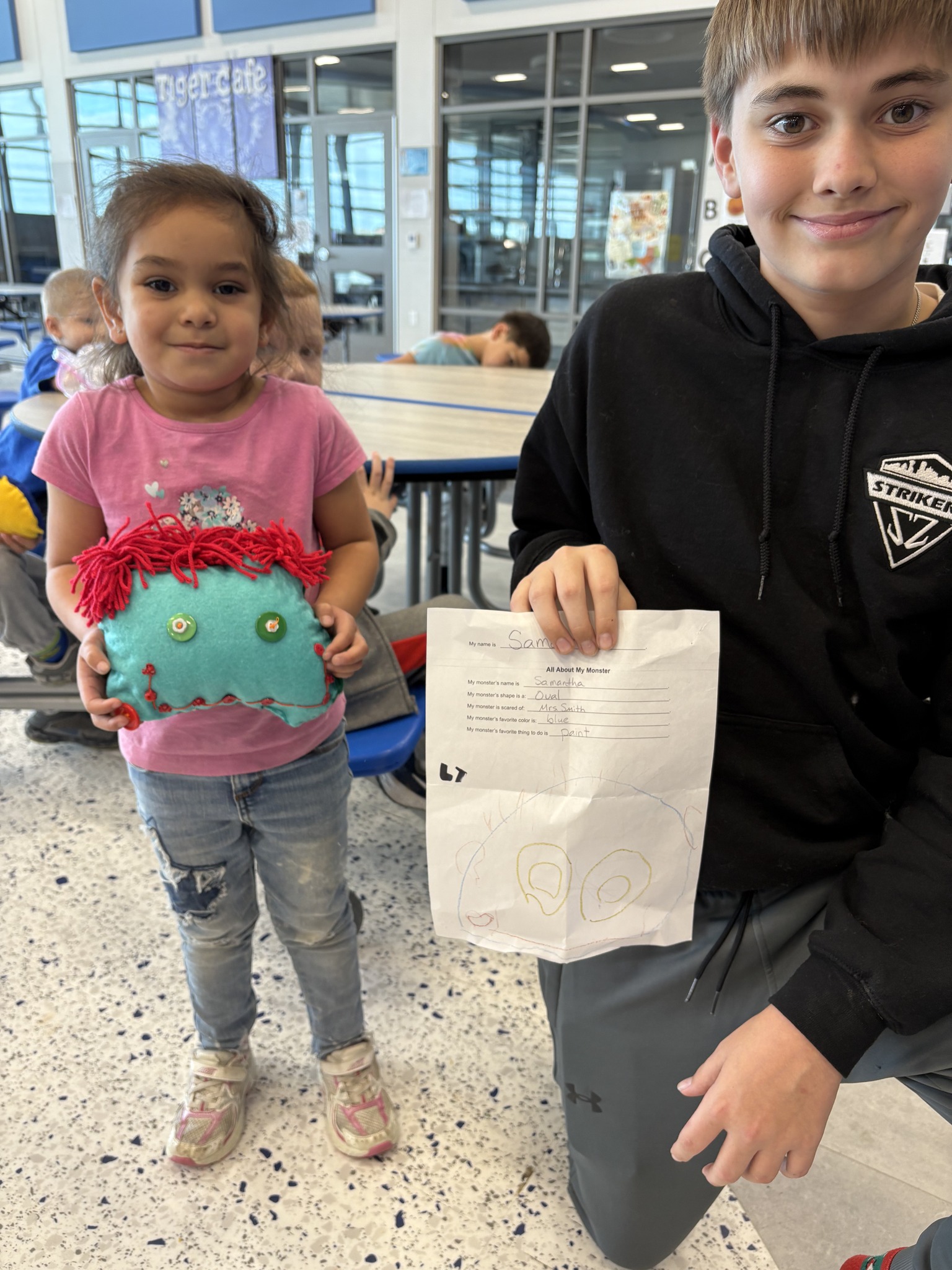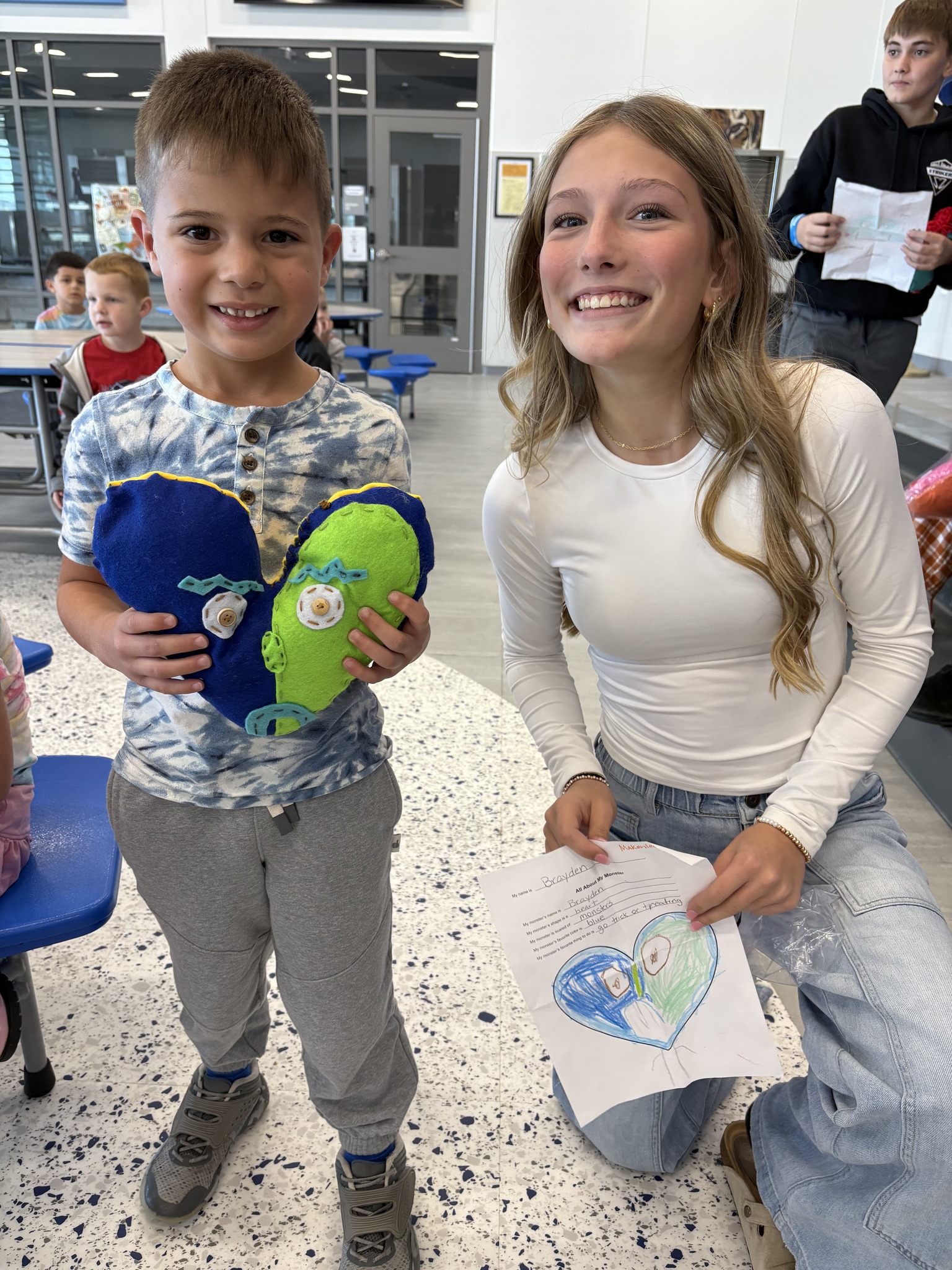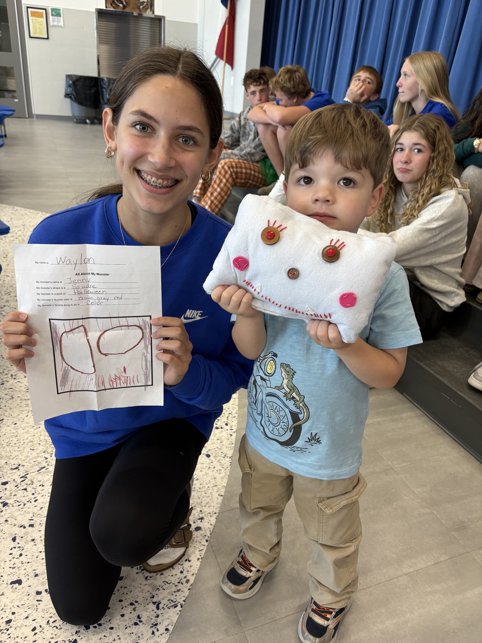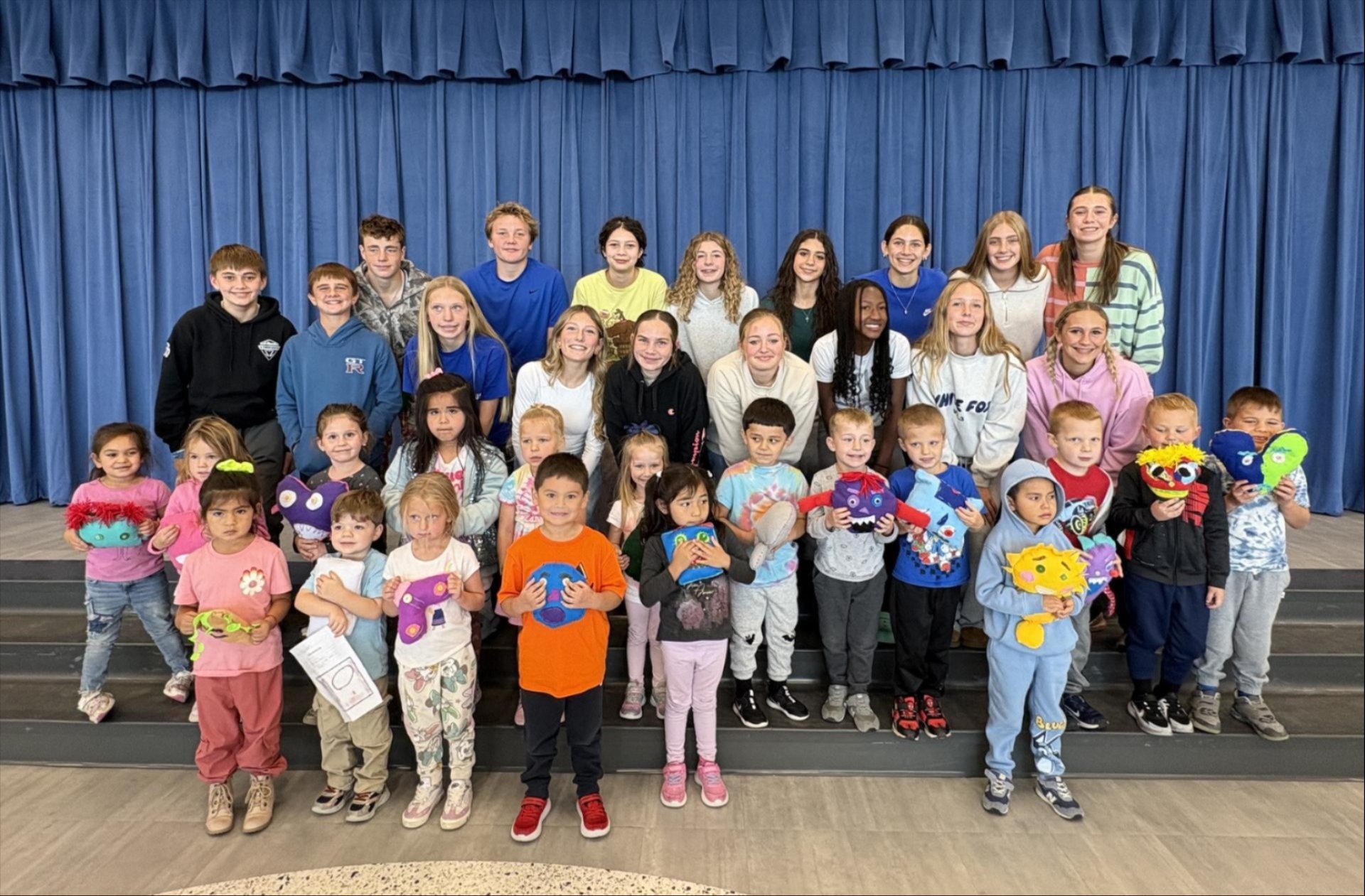 Cuteness overload at the elementary when our MS Theatre students delivered monster plushies to the Pre-K students who designed them.