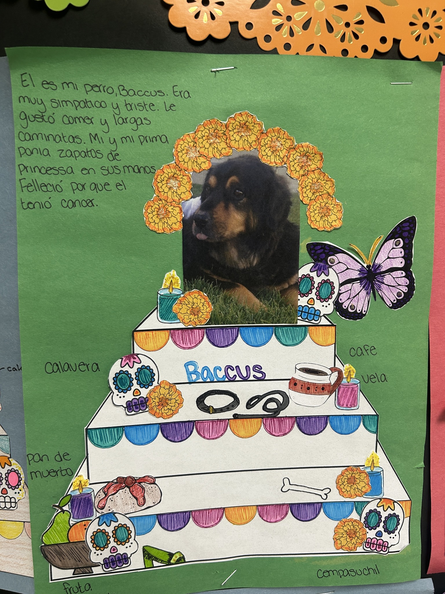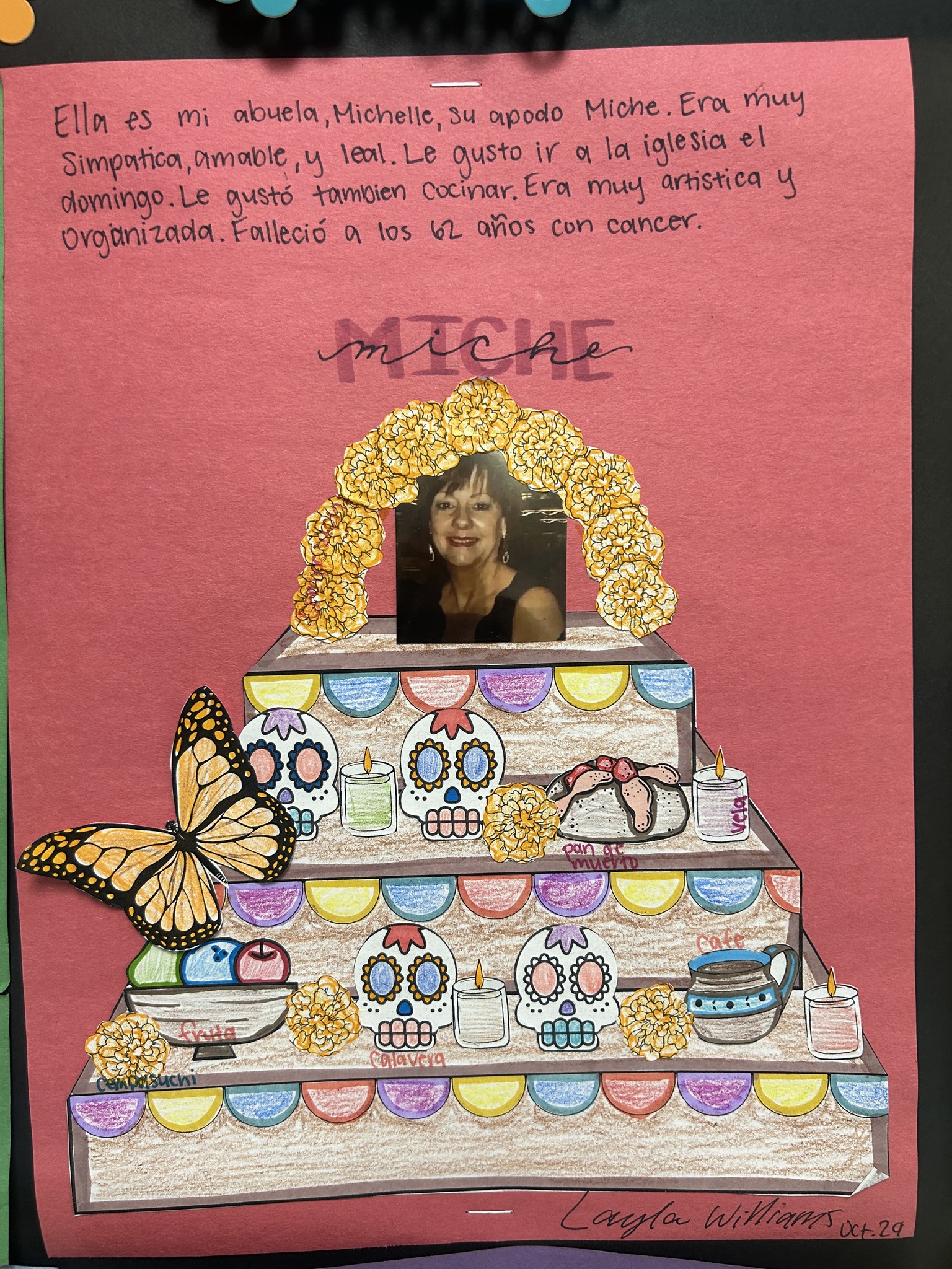 Spanish II students in Ms. Mercado’s class created projects to honor loved ones as part of their study of Día de los Muertos. They built traditional ofrendas featuring meaningful items that celebrate and remember those who have passed, including beloved pets. Día de los Muertos is observed on November 1st and 2nd, a time to honor and cherish the memories of loved ones. |